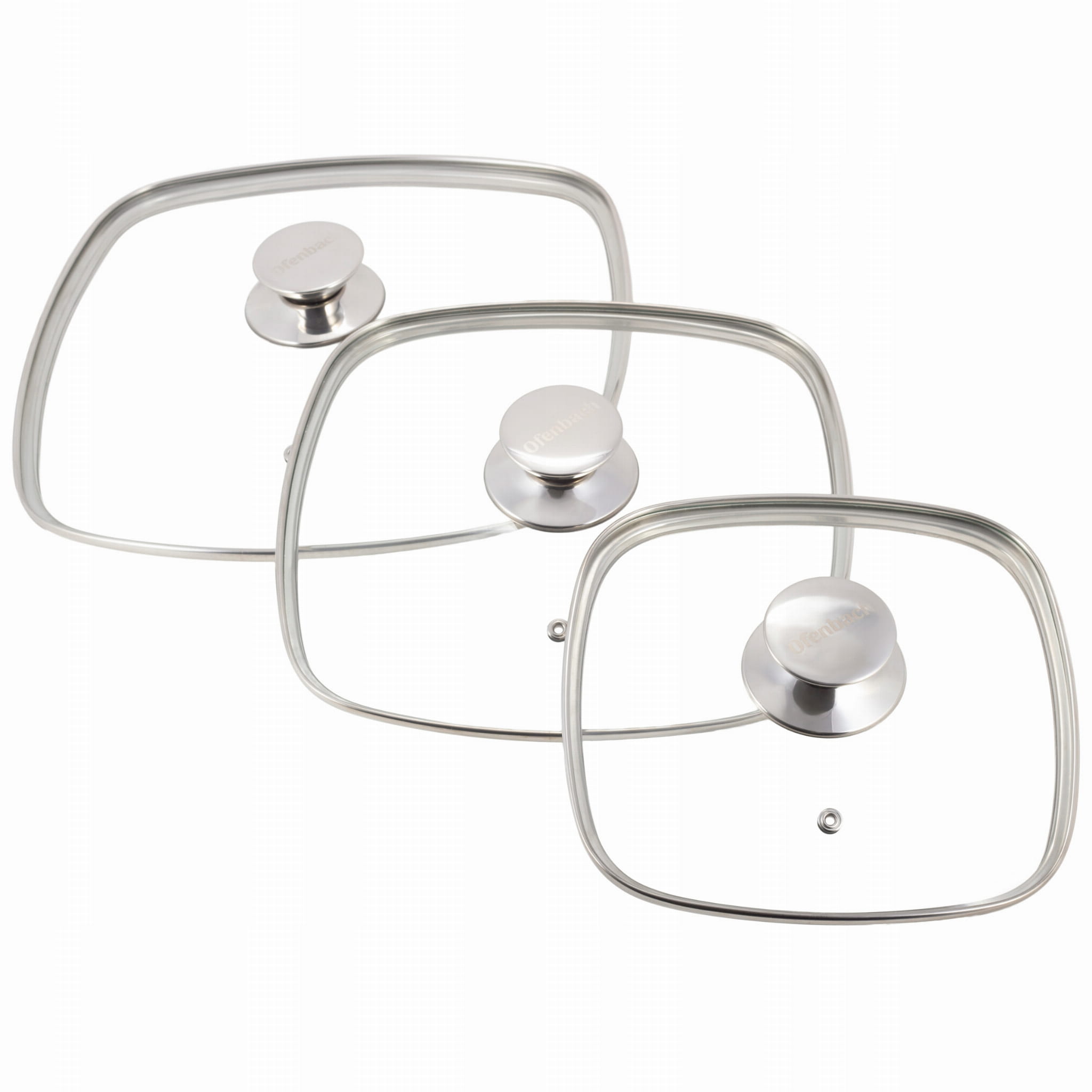 - pokrywki wykonane ze szkła żaroodpornego ze stalową obręczą oraz posiadają wlew / dozownik na przyprawy płynne lub olej