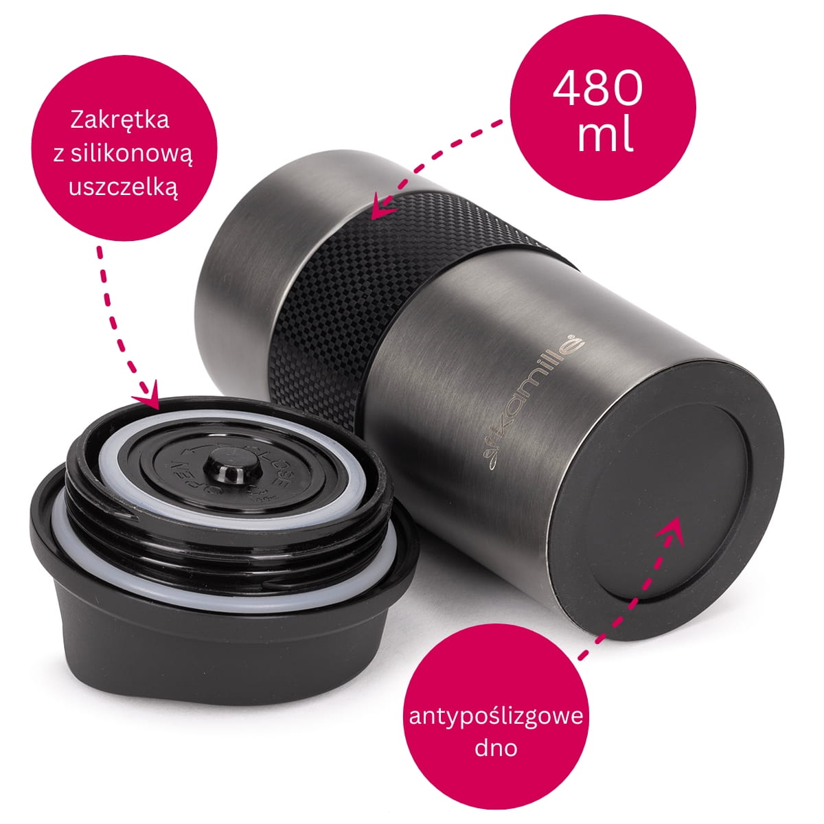 Wybierz niezawodność i styl w jednym - kubek termiczny Kamille spełni Twoje oczekiwania, zapewniając komfort picia gdziekolwiek jesteś.