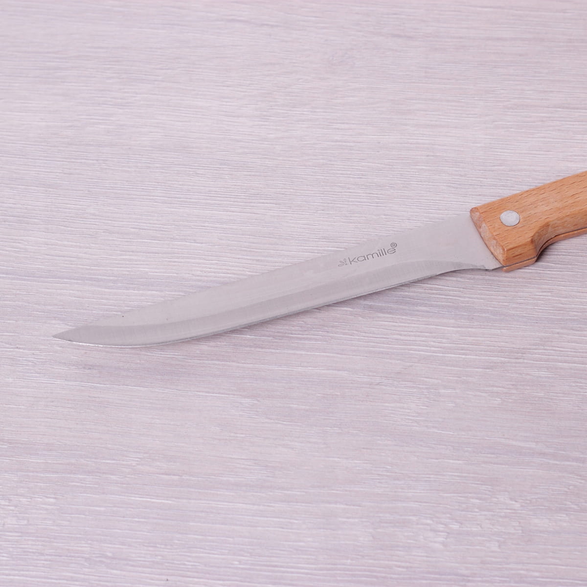 Nóż Kamille do obierania i krojenia warzyw oraz owoców niezbędny w każdej kuchni. Doskonały także do siekania drobnych warzyw i ziół. Ostrze o wysokiej jakości szlachetnej stali nierdzewnej, bardzo długa żywotność i niezwykły wygodny drewniany uchwyt, powodują że nie odejdziesz od blatu kuchennego. Nóż idealny do używania na co dzień. Podczas użytkowania jest bezpieczny i funkcjonalny. Dzięki materiałowi i technologii wykonania nóż jest bardzo ostry i twardy. Sprawi, że przygotowywanie zdrowych posiłków stanie się wyjątkowo łatwe. Nóż idealny do używania na co dzień. Podczas użytkowania jest bezpieczny i funkcjonalny. Dzięki materiałowi i technologii wykonania nóż jest bardzo ostry i twardy. Sprawi, że przygotowywanie zdrowych posiłków stanie się wyjątkowo łatwe.