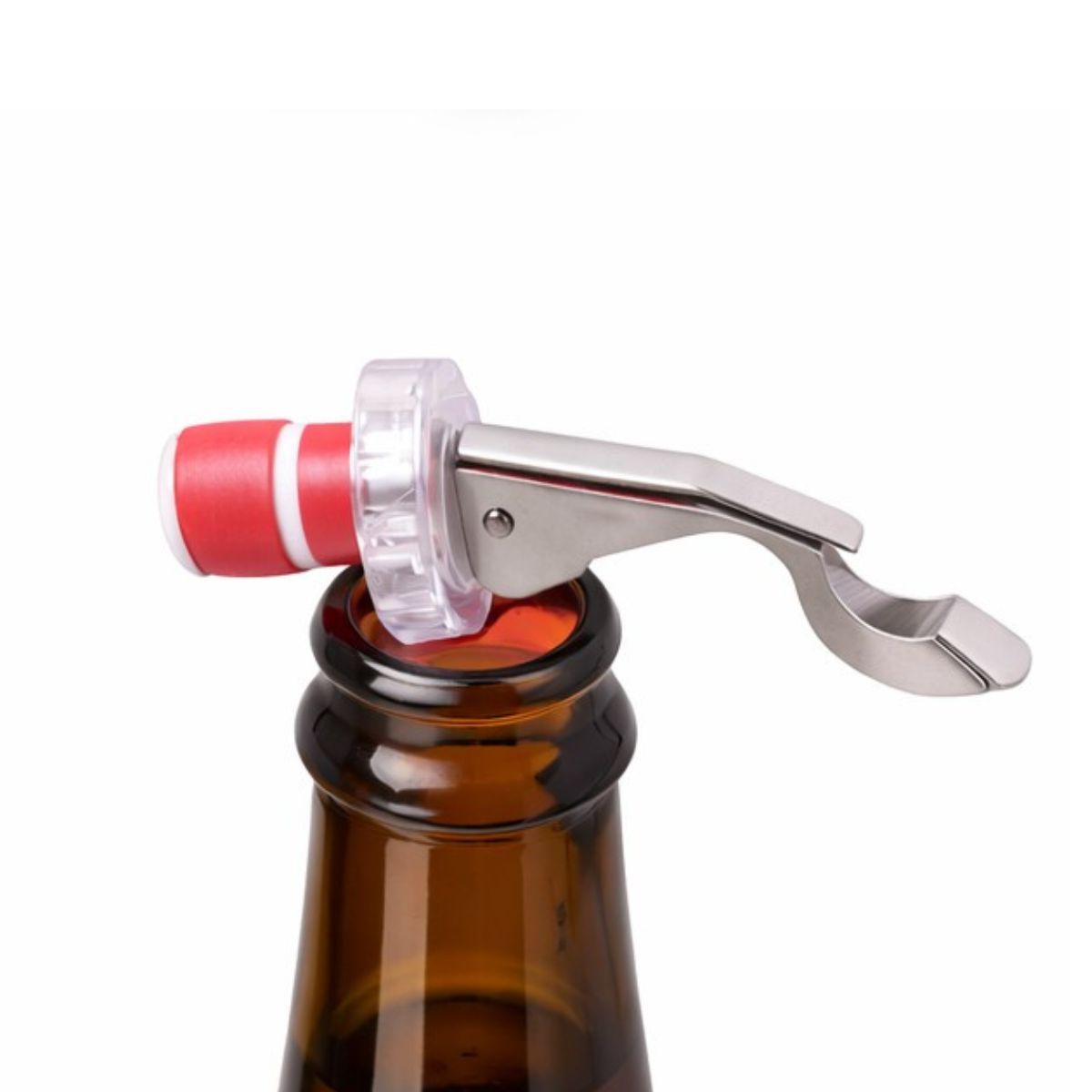 To będzie idealnym dodatkiem do urządzeń kuchennych. Produkt praktyczny i wygodny w obsłudze, łączy w sobie dwa najbardziej używane narzędzia - otwieracz do butelek i korek. Otwieracz do butelek wykonany z wysokiej jakości stali nierdzewnej, korek wykonany z plastiku. Specjalny kształt produktu umożliwia łatwe otwieranie pokrywy metalowej. Korek szczelnie przylega do ścianek butelki, dzięki czemu nie trzeba martwić się, że napój w trakcie przechowywania straci swój kolor, smak i aromat.