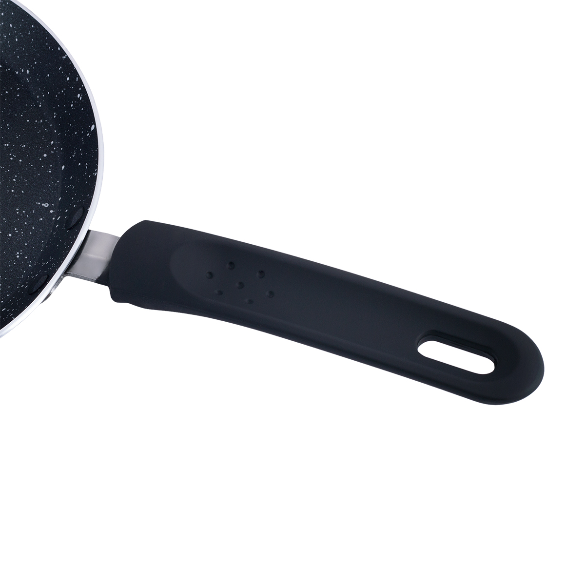 - Nieprzywierająca marmurowa powłoka gwarantuje, że potrawy nie przylegają do powierzchni patelni, co ułatwia proces gotowania i czyszczenie, pozwalając również na zdrowsze gotowanie bez nadmiernego dodatku tłuszczu.