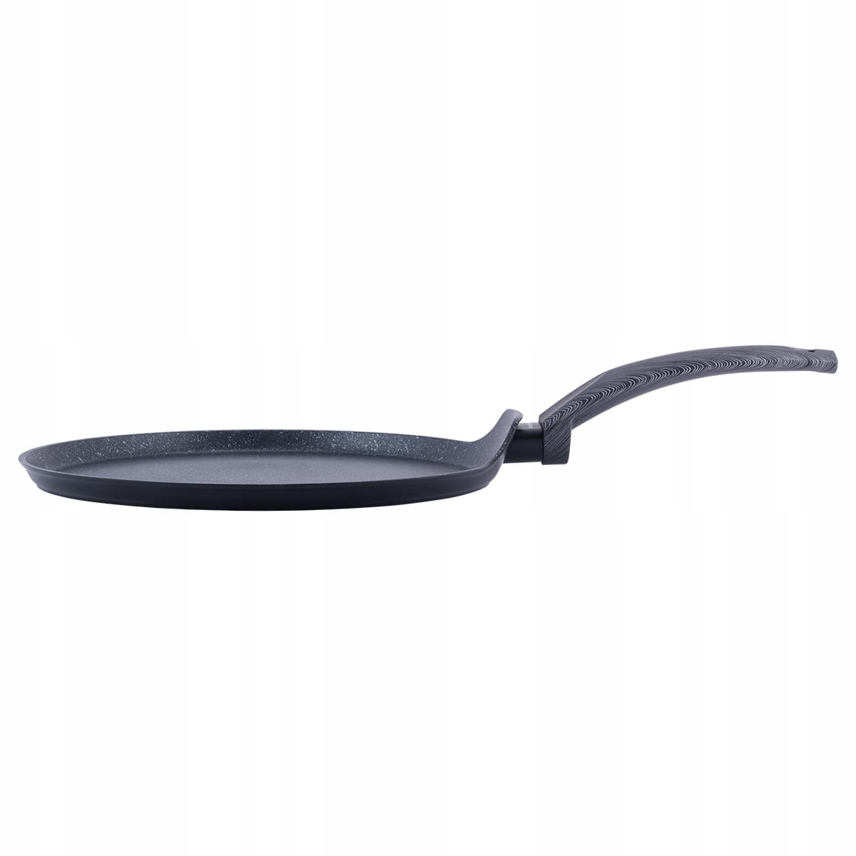 Korpus patelni wykonany jest z wysokiej jakości aluminium, które szybko się nagrzewa i równomiernie rozprowadza ciepło. Wewnętrzna powłoka marmurowa non-stick zapobiega przywieraniu, dzięki czemu naleśniki wychodzą idealnie cienkie i łatwo odchodzą od powierzchni patelni.
