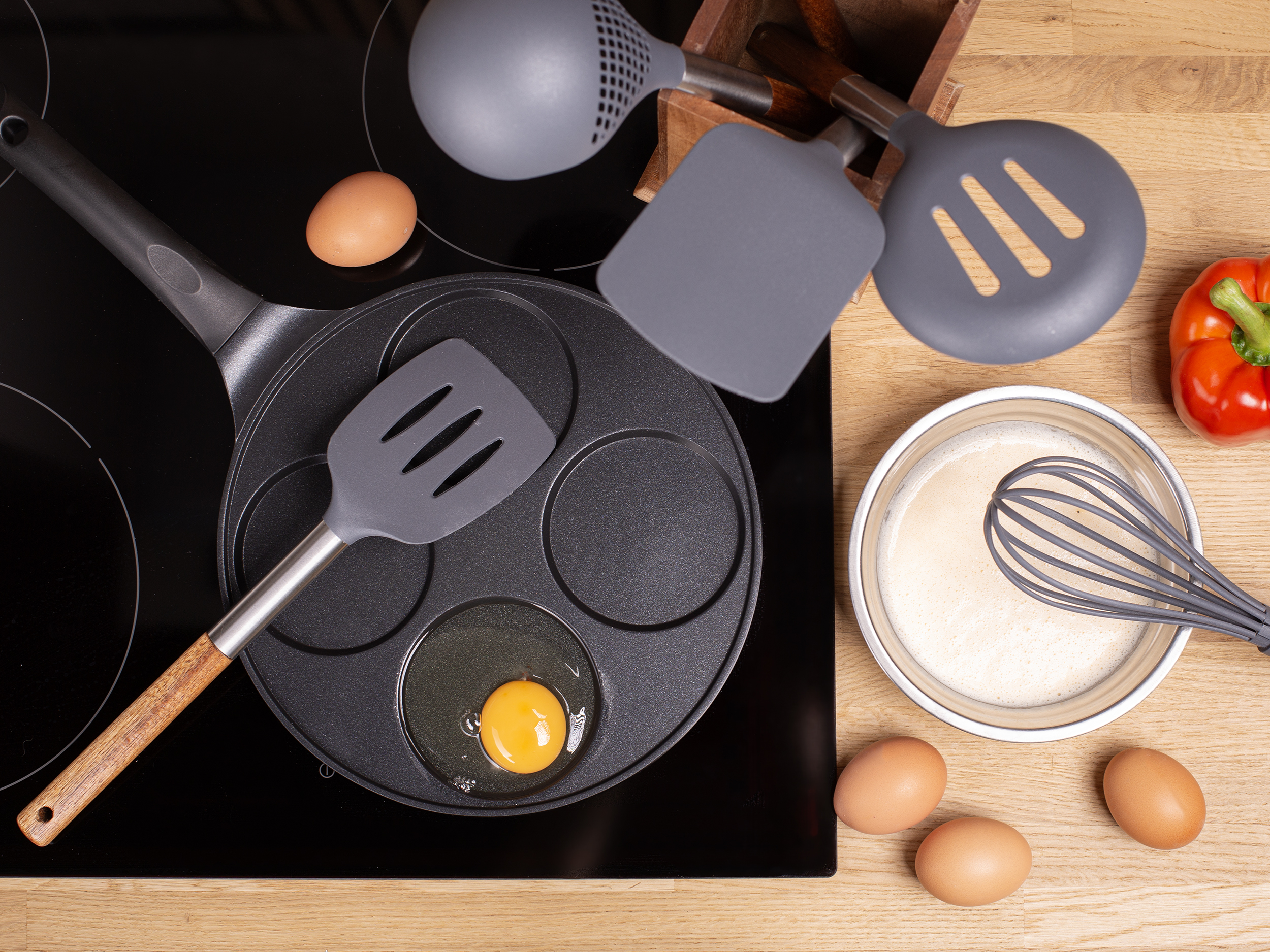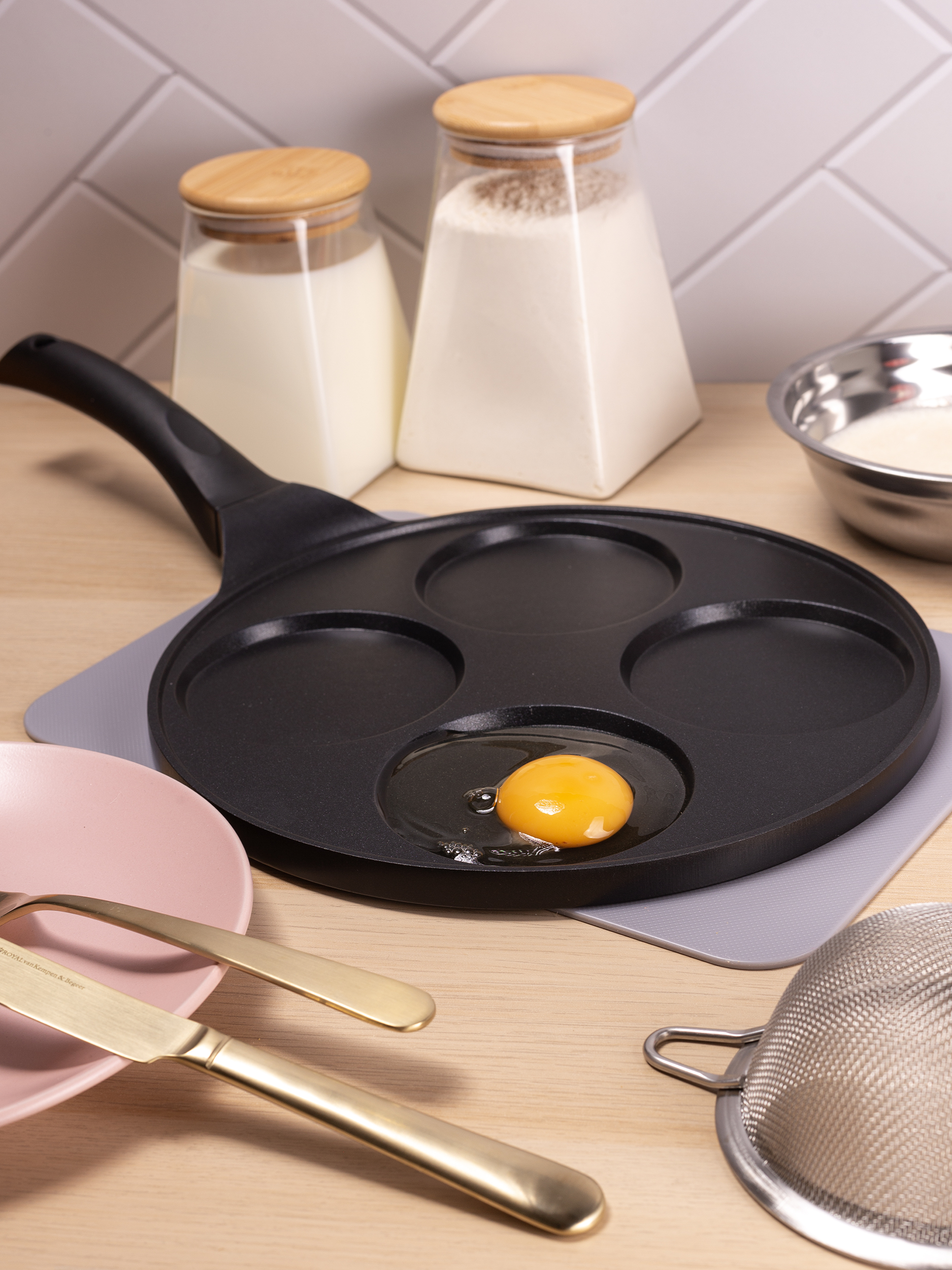 Ergonomiczny uchwyt zapewnia wygodę i bezpieczeństwo pracy, a solidna konstrukcja patelni do pancakes i naleśników sprawia, że będzie służyć przez lata. To świetny prezent do domu lub mieszkania – niezależnie, czy smażysz cienkie naleśniki, puszyste pancakes, jajka sadzone czy domowe placki.