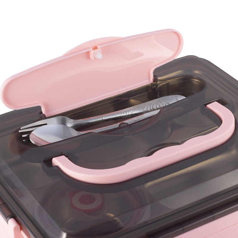Pokrywka pojemnika została zaprojektowana w funkcjonalny pojemnik z zestawem sztućców dzięki czemu nie musimy martwić się zabrudzeniem sztućców, które leżą gdzieś luzem oraz ich zagubieniem. Wszystko niezbędne do spożycia posiłku, otrzymasz w jednym miejscu.