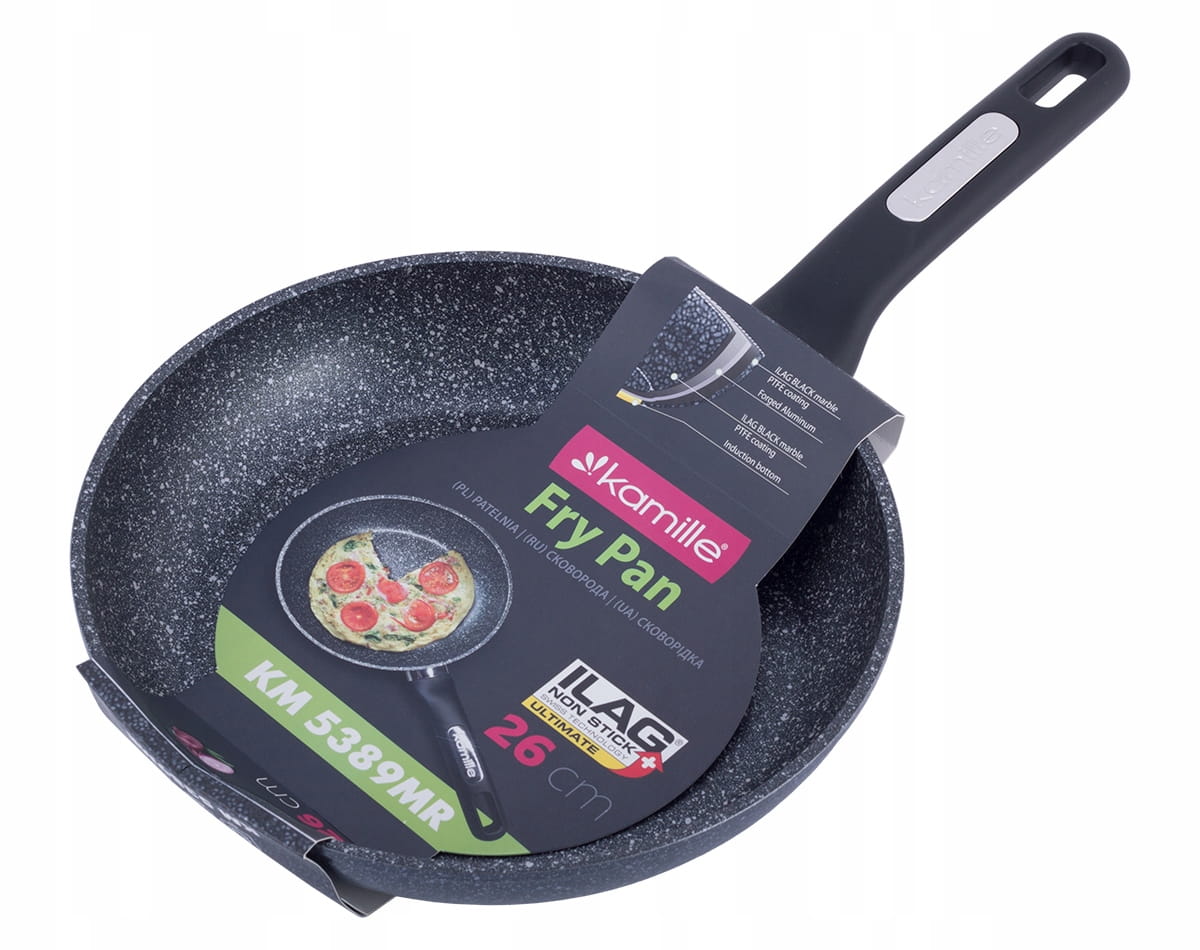 Praktyczna patelnia marmurowa Kamille 26 cm to solidne i wygodne naczynie kuchenne, które sprawdzi się w każdej kuchni podczas codziennego przygotowywania posiłków.