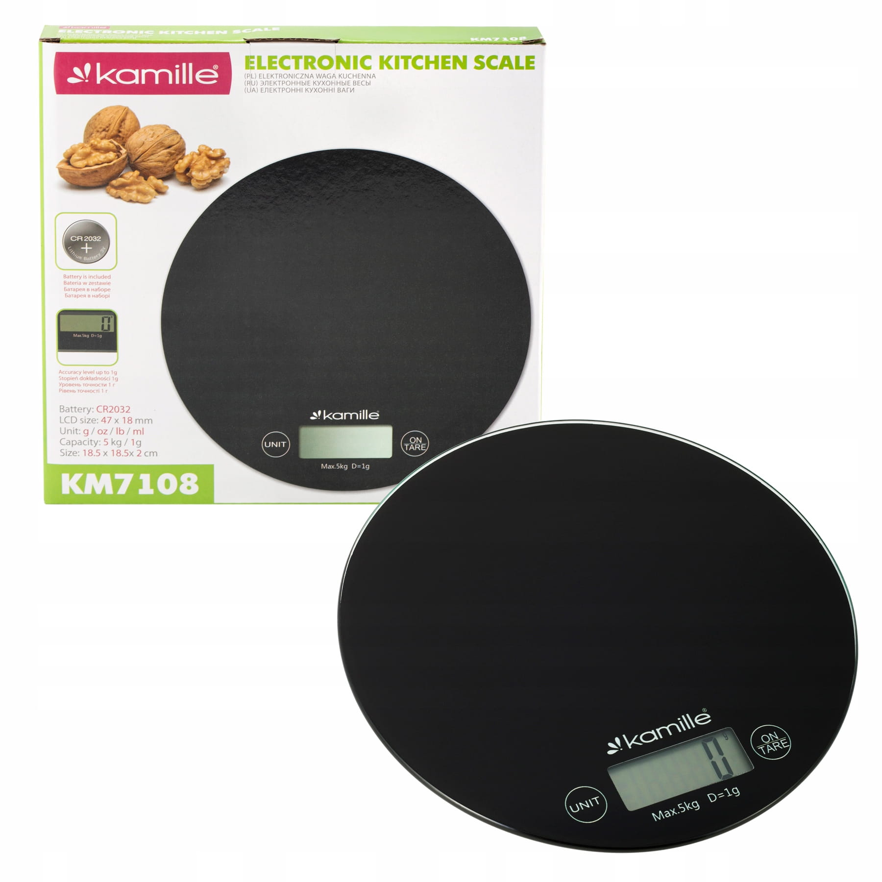 • Wymiary wagi: 18,5*18,5*2 cm