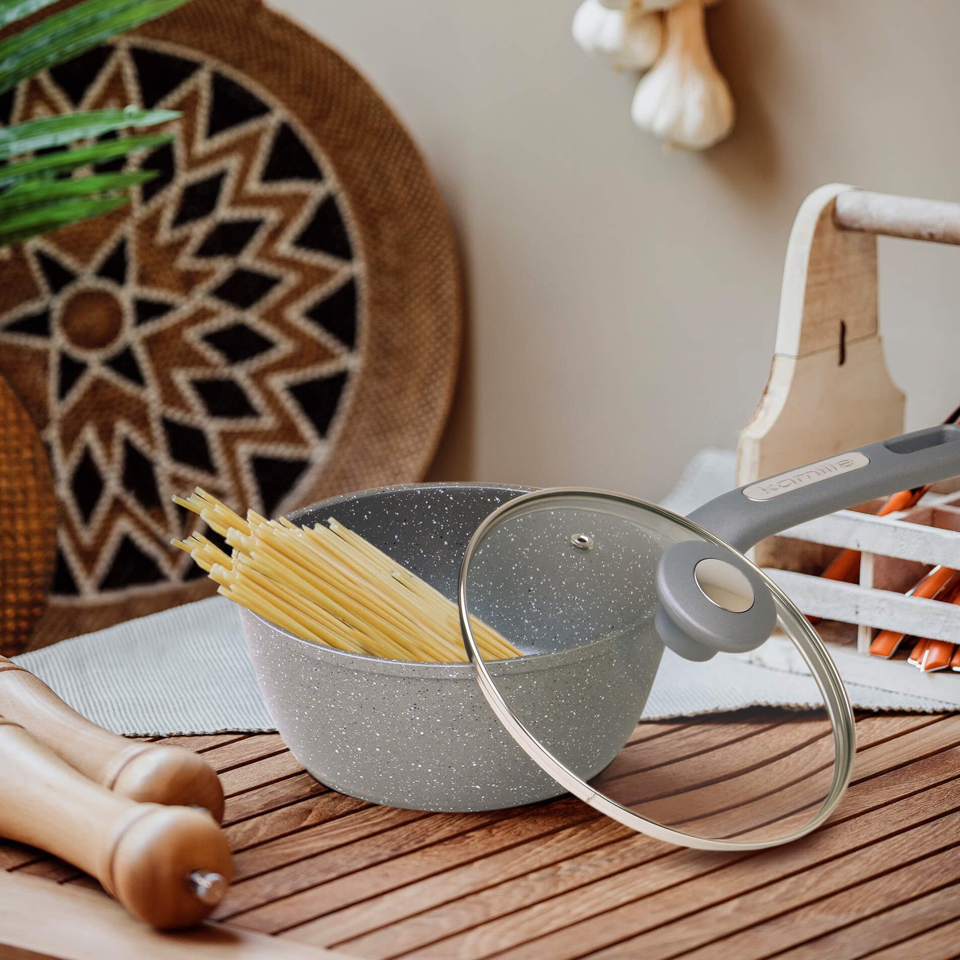 To mały garnek, który używasz częściej niż myślisz. Idealny do podgrzewania mleka, robienia sosów, kaszy czy porcji dla jednej osoby. Dzięki powłoce granitowej nic nie przywiera, a gotowanie jest szybkie i bezproblemowe.