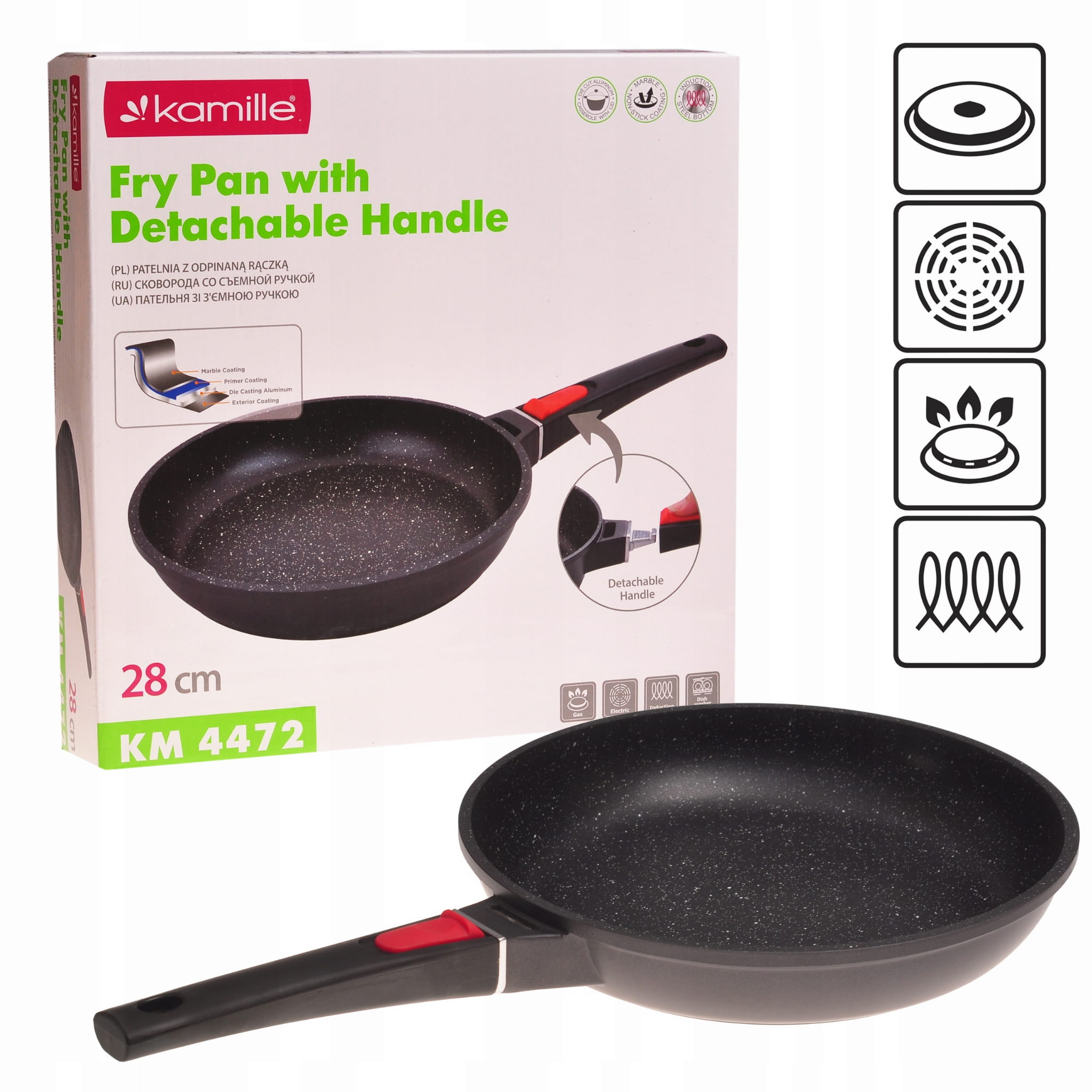 Solidna patelnia marmurowa z odpinaną rączką 28cm