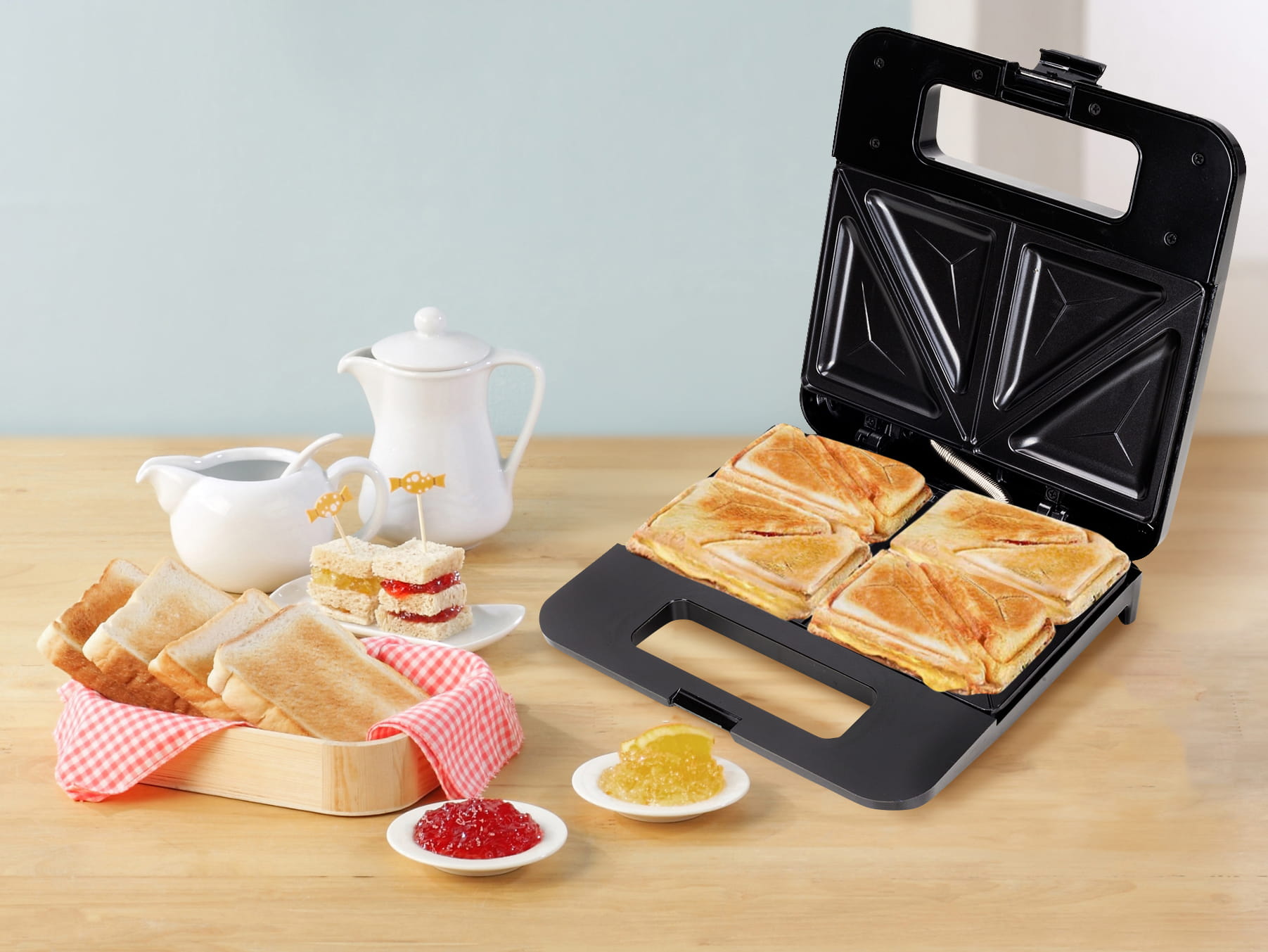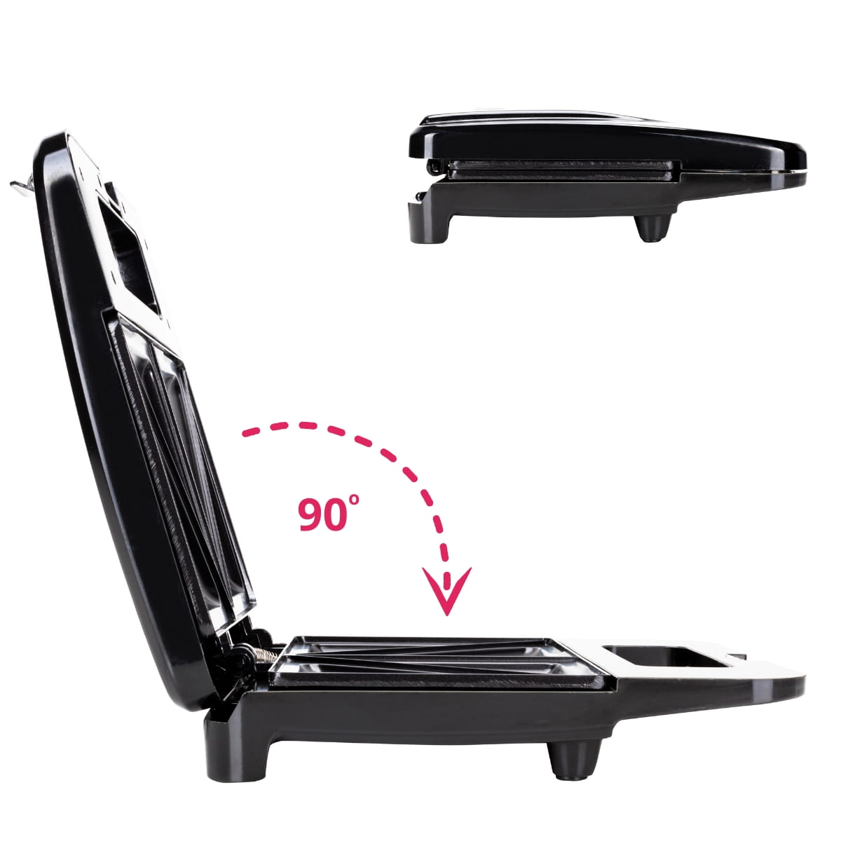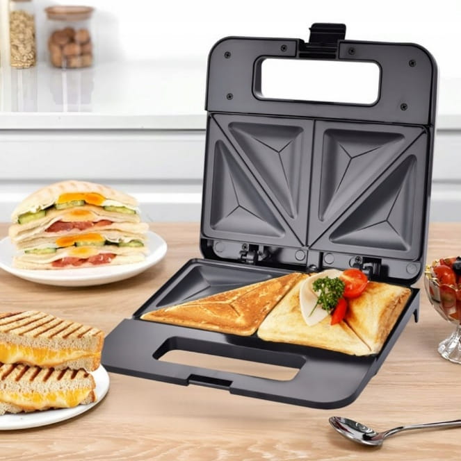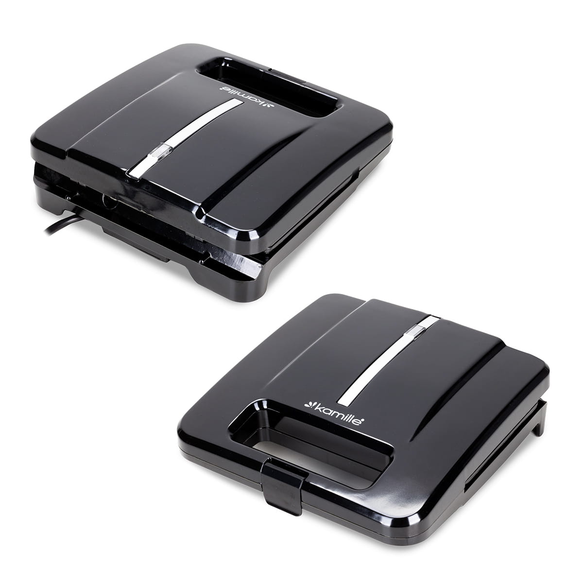 Mamy coś dla Ciebie! Nasz opiekacz do kanapek Kamille stanie na wysokości zadania w każdej kuchni! Jego nieprzemijalny design genialnie wpasuje się w wygląd każdej kuchni, nieznaczny wymiar pozwoli na przechowywanie w szufladzie czy szafce. Dzięki szybkiemu podgrzewaniu, pozwala na przygotowanie wymarzonej kanapki w dosłownie kilka minut. Nienagrzewający się uchwyt ułatwi użytkowanie urządzenia podczas przygotowywania posiłku. Powierzchnie pokryte powłoką nieprzywierającą - możesz łatwo oczyścić nawet zwykłym ręcznikiem papierowym.