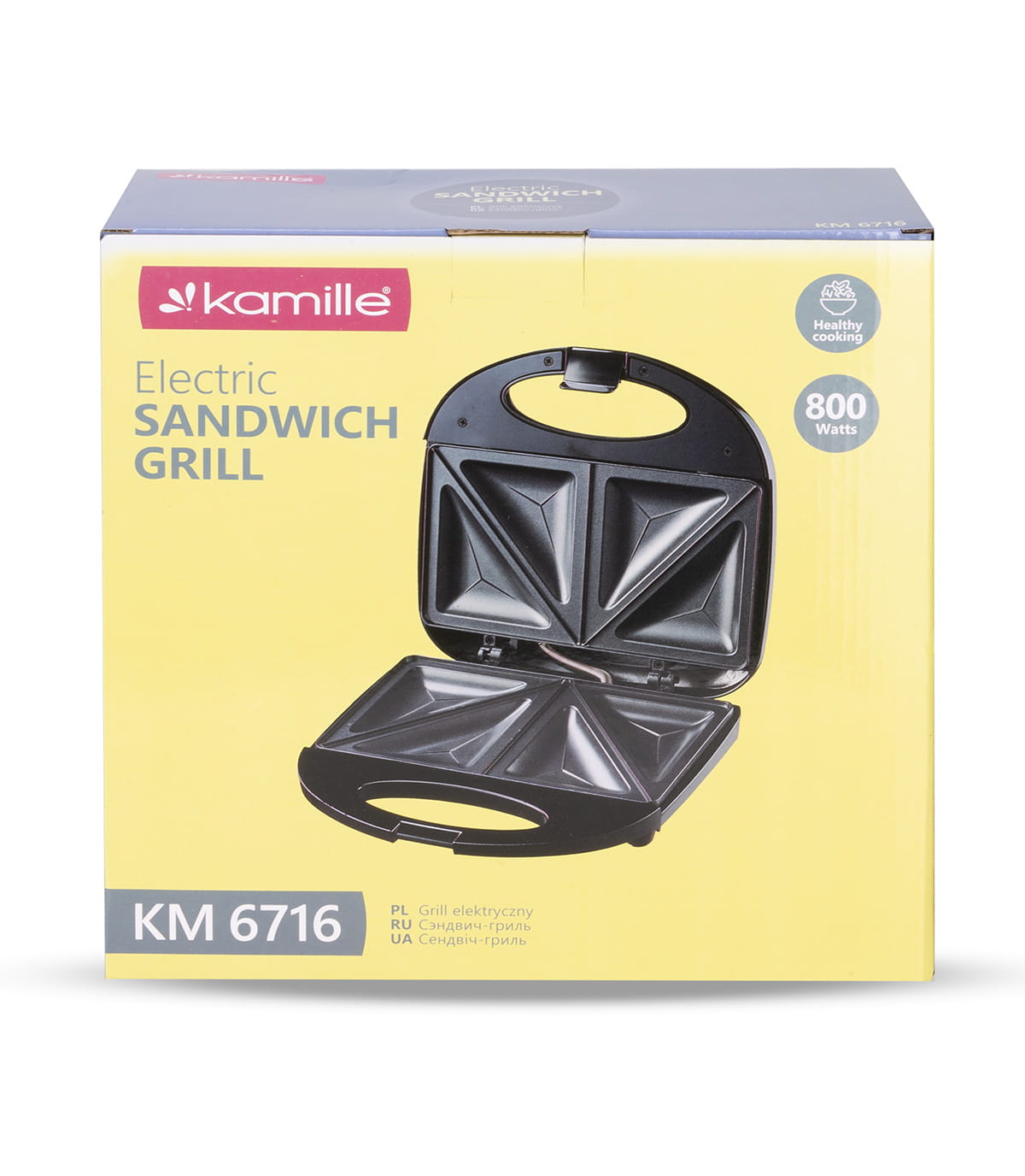 Mamy coś dla Ciebie! Nasz opiekacz do kanapek Kamille stanie na wysokości zadania w każdej kuchni! Jego nieprzemijalny design genialnie wpasuje się w wygląd każdej kuchni, nieznaczny wymiar pozwoli na przechowywanie w szufladzie czy szafce. Dzięki szybkiemu podgrzewaniu, pozwala na przygotowanie wymarzonej kanapki w dosłownie kilka minut. Nienagrzewający się uchwyt ułatwi użytkowanie urządzenia podczas przygotowywania posiłku. Powierzchnie pokryte powłoką nieprzywierającą - możesz łatwo oczyścić nawet zwykłym ręcznikiem papierowym.