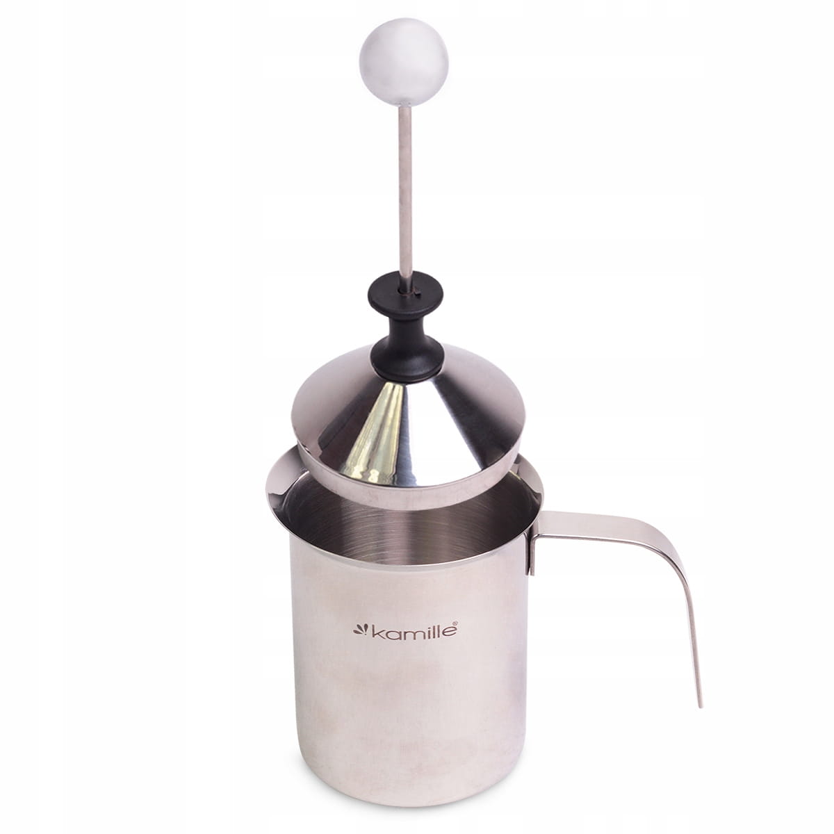 Spieniacz do mleka KAMILLE przeznaczony do ubijania puszystej piany do kawy, kakao lub gorącej czekolady. Posiada prosty i wygodny uchwyt. Specjalny profil krawędzi ułatwia nalewanie bez rozlewania.