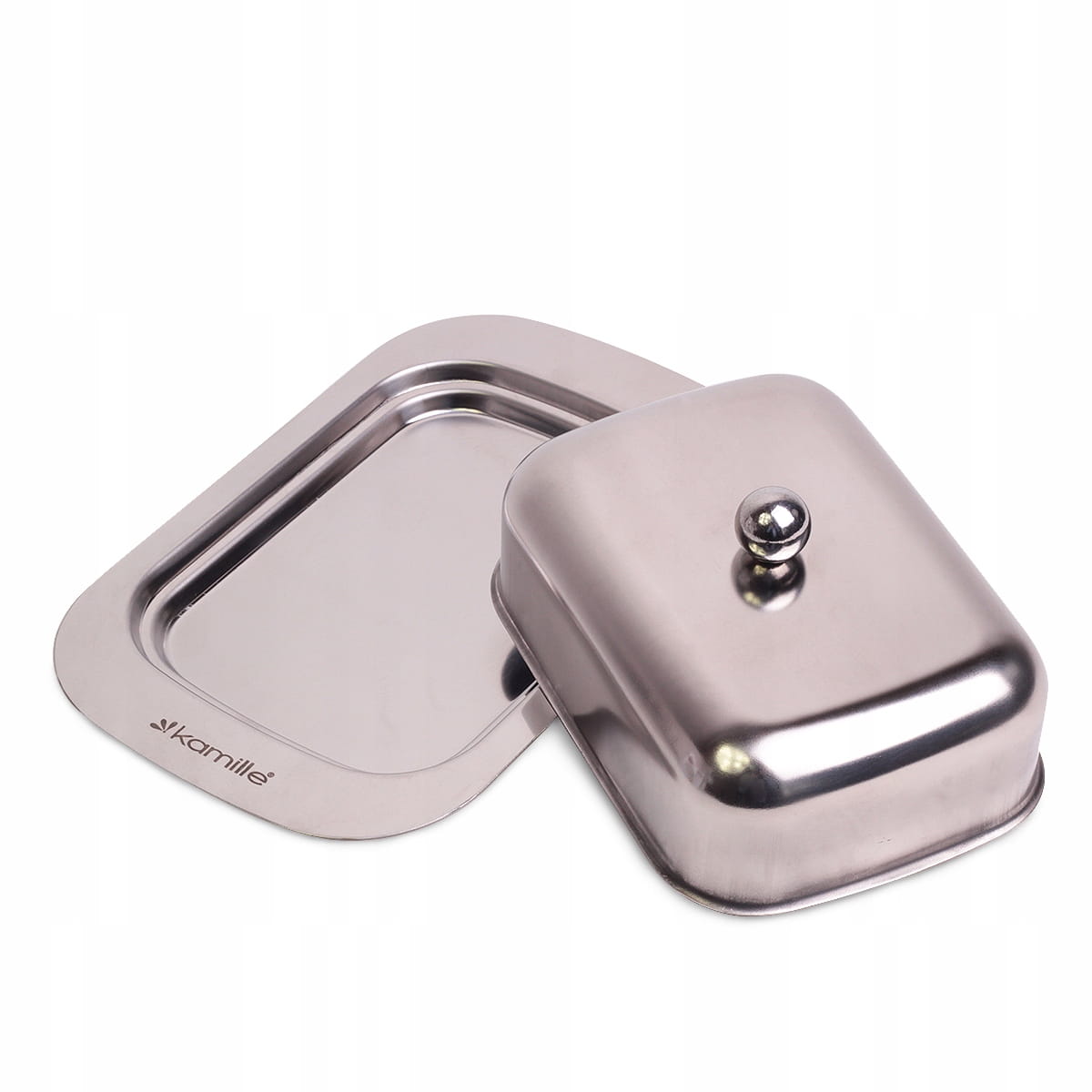 Maselniczka dwuelementowa Kamille wykonana jest z wysokiej jakości stali nierdzewnej (materiał bezpieczny dla zdrowia i neutralne dla żywności). Dzięki zamknięciu w postaci przykrywki mamy pewność, że masło lub margaryna są zabezpieczone przed owadami, szybkim rozpuszczaniu czy innymi czynnikami. Maselniczka może być przechowywana w lodówce. Łatwa w utrzymaniu w czystości.