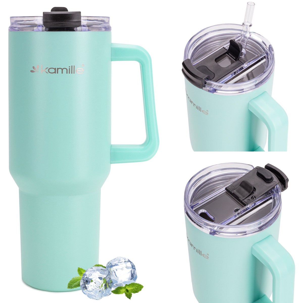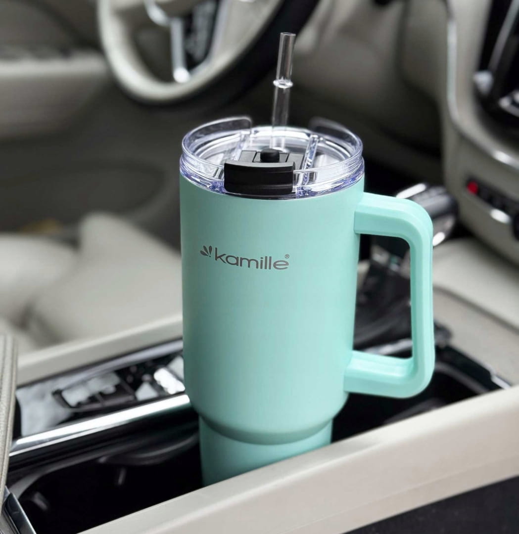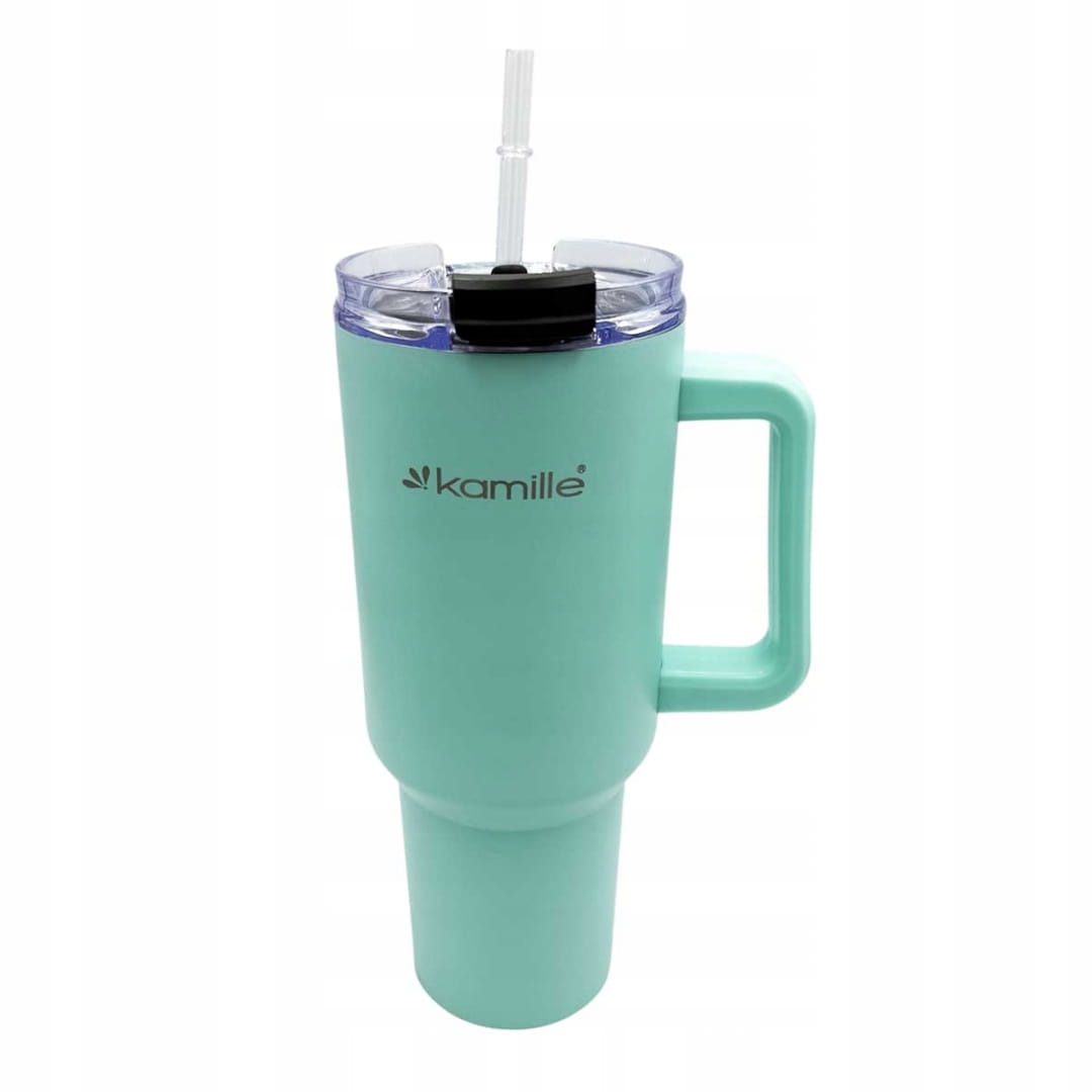 Duży i szczelny kubek termiczny 1,2 l w modnym miętowym kolorze to idealne rozwiązanie dla osób, które potrzebują napoju na cały dzień. Wykonany ze stali nierdzewnej, długo utrzymuje temperaturę kawy, herbaty lub zimnych napojów, a wygodny uchwyt i praktyczna pokrywka zwiększają komfort użytkowania. Styl inspirowany popularnymi kubkami typu Stanley łączy nowoczesny wygląd z wysoką funkcjonalnością. Świetnie sprawdzi się w pracy, w podróży, na siłowni i na co dzień.
