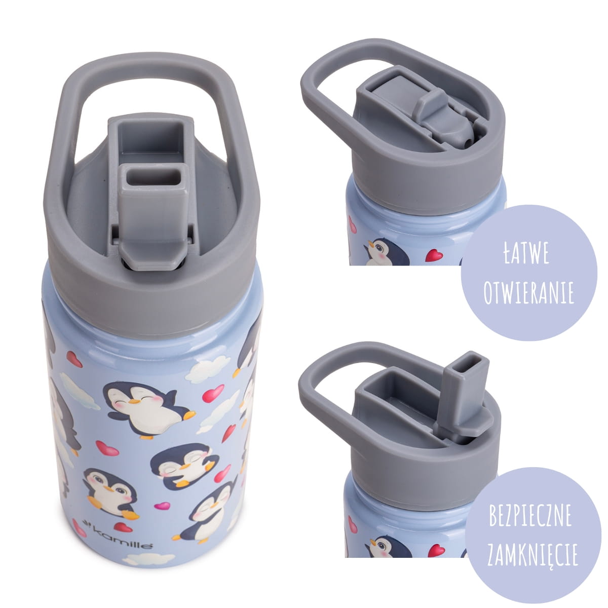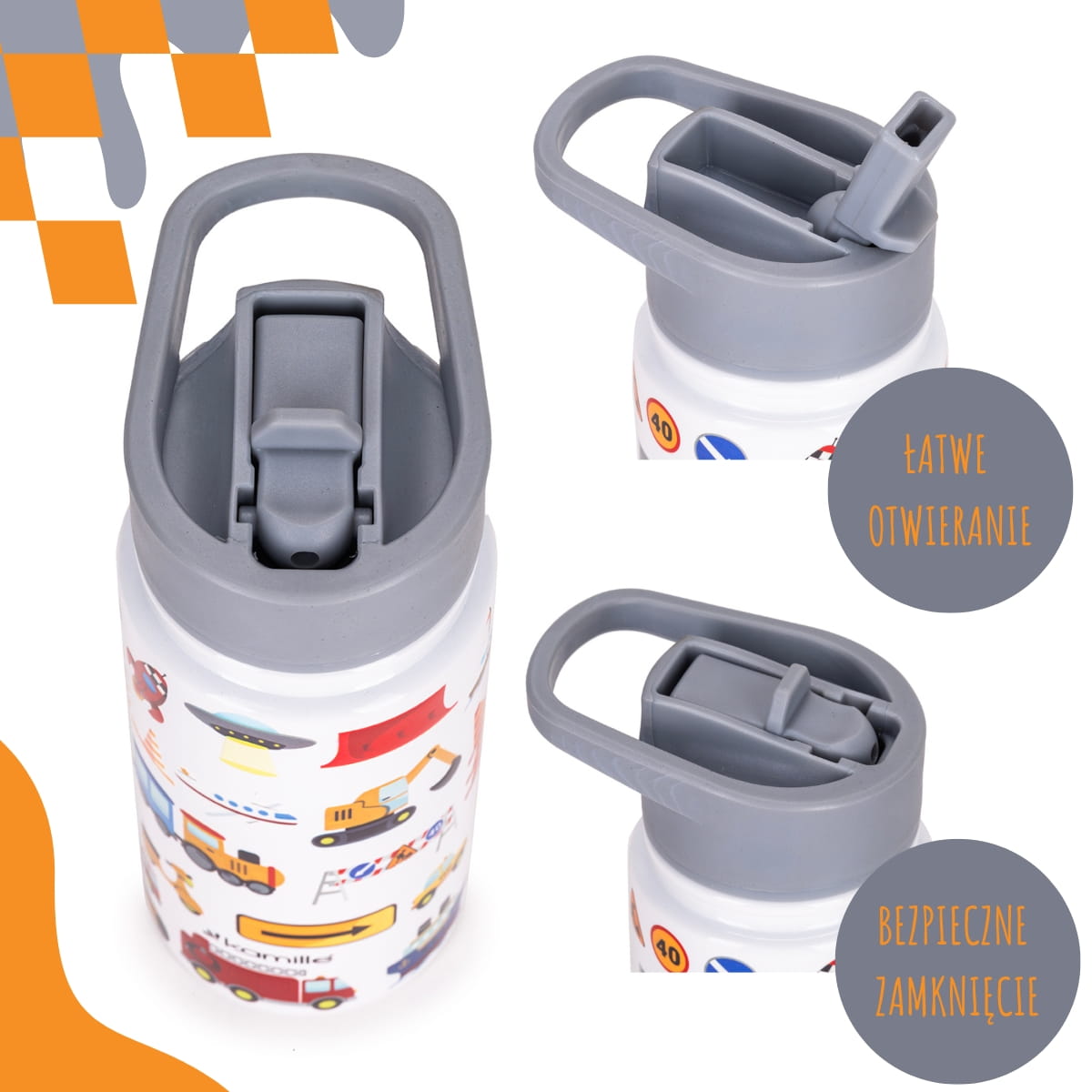 Termos dziecięcy został zaprojektowany z myślą o bezpieczeństwie. Szczelne zamknięcie skutecznie chroni przed przeciekaniem w plecaku, a solidna pokrywka zapobiega przypadkowemu otwarciu. To wygodne rozwiązanie dla rodziców i komfort dla dziecka. Wygodny dla małych rączek. Lekka i poręczna forma sprawia, że kubek termiczny jest łatwy do trzymania przez dziecko. Ergonomiczny kształt ułatwia codzienne użytkowanie w szkole, przedszkolu czy podczas spacerów.