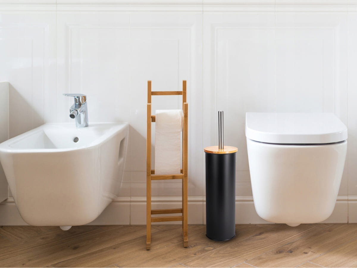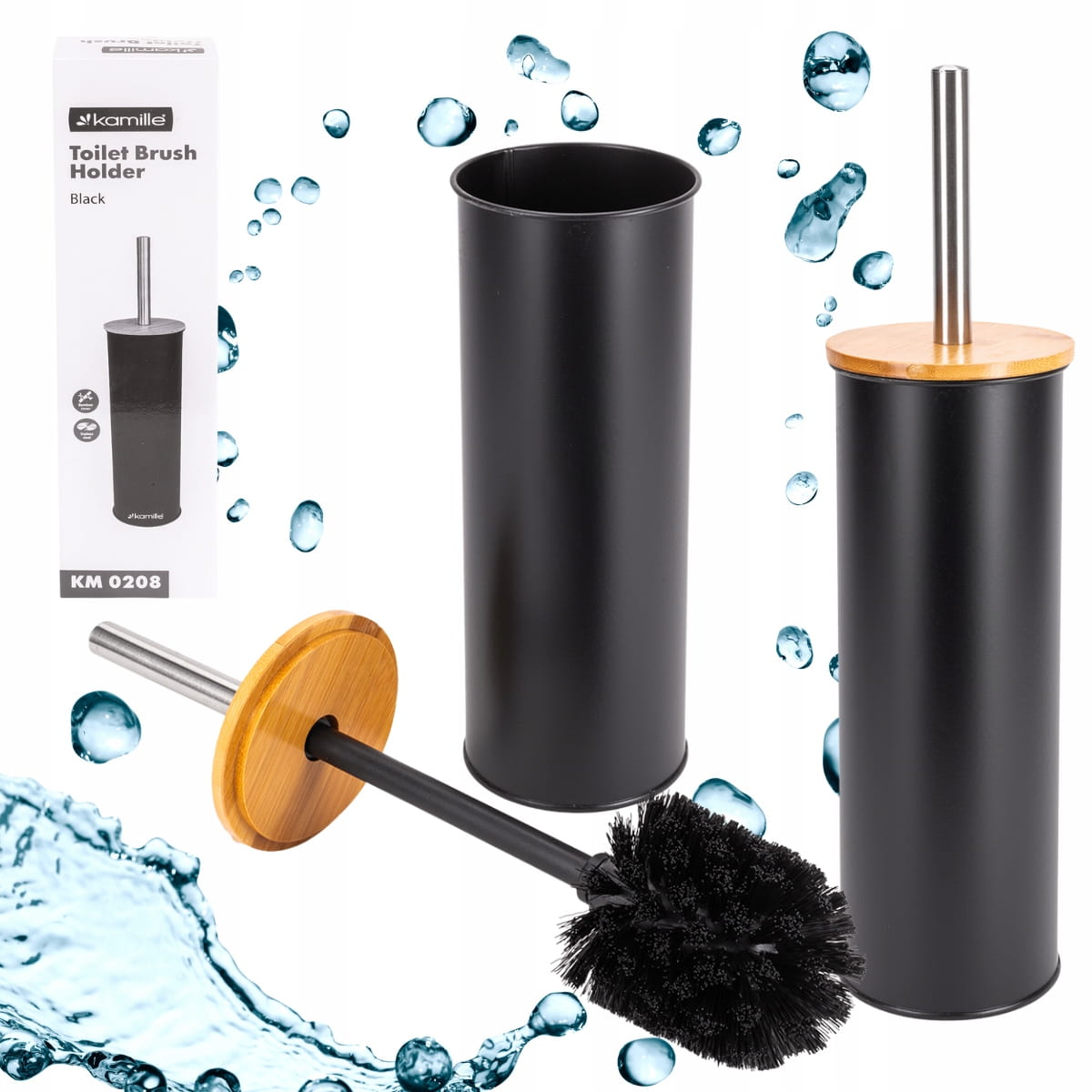 Nowoczesny i elegancki zestaw wykonany z wysokiej jakości stali malowanej na czarny kolor, bambusu i tworzywa sztucznego. Zestaw do czyszczenia toalety Kamille został stworzony z myślą o tych, którzy cenią sobie wygodę, trwałość i elegancję nawet w najbardziej praktycznych aspektach codziennego życia. Szczotka do toalety Kamille jest nie tylko łatwa w użyciu, ale również prosta w czyszczeniu, co czyni je idealnym wyborem zarówno do domu, jak i obiektów publicznych. Produkt bardzo solidny, stąd też prezentuje się niezwykle okazale i dostojnie, będzie doskonałą ozdobą łazienek w domach, restauracjach, hotelach.