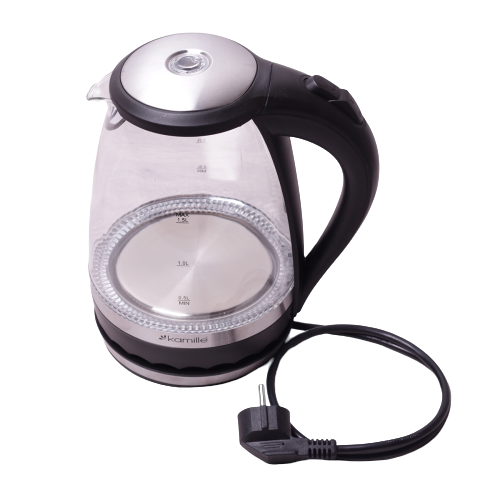 Wykonany z wysokiej jakości żaroodpornego szkła z wbudowaną płytą grzewczą. Łatwe stawianie czajnika na obrotowej podstawie. Wygodne i bezpieczne otwieranie pokrywki przyciskiem na rączce. Szklany zbiornik sprawia wrażenie absolutnej czystości wody, która aktualnie się gotuje. Zamontowany w dzbanku filtr jest zbudowany z siatki zatrzymującej cząsteczki kamienia. Filtr nie usuwa kamienia z wody, zapobiega jedynie jego przedostawaniu się do naczynia przy wlewaniu wody. Filtr można wyjąć i przepłukać.Automatyczny wyłącznik, dzięki niemu nie musisz kontrolować momentu zagotowania się wody, czajnik sam się wyłączy.
