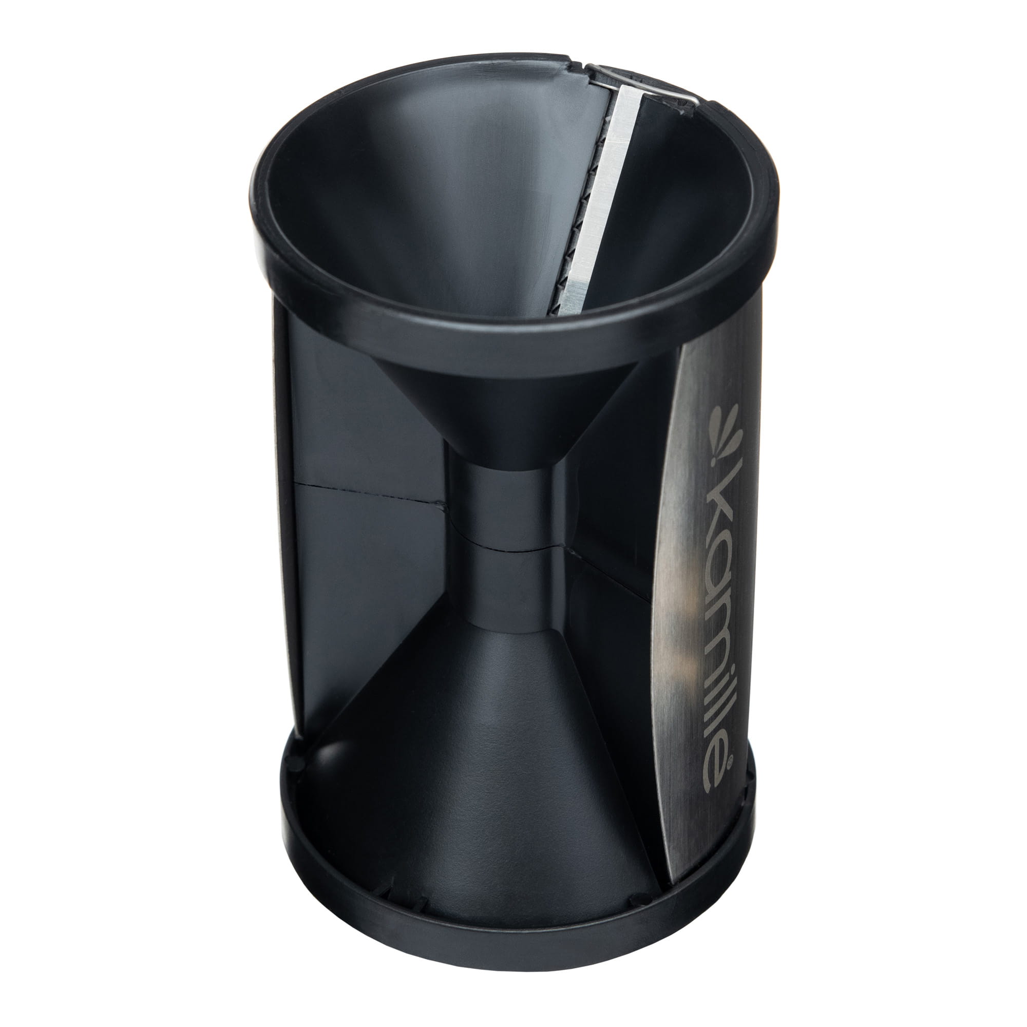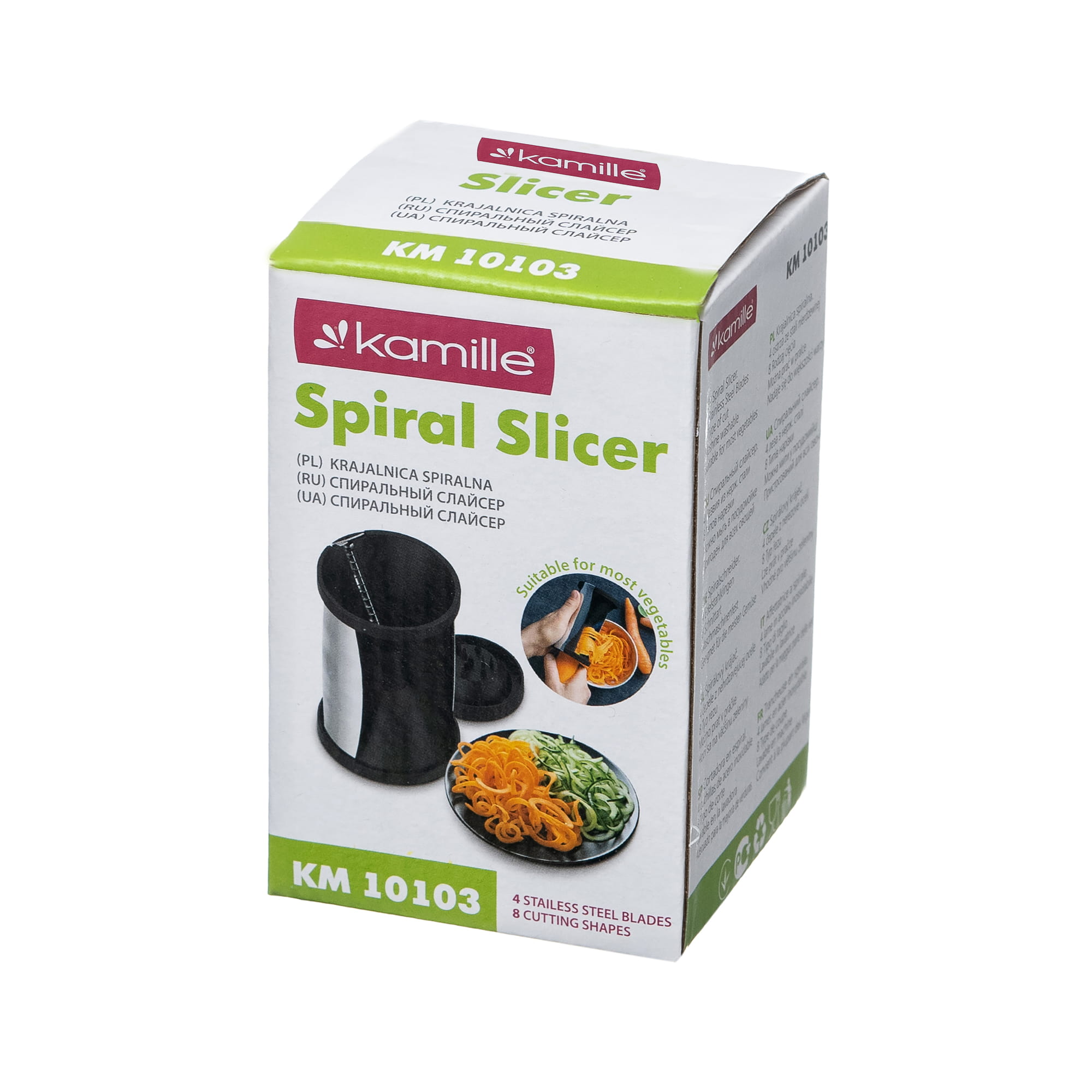 <>pWysokiej jakości spiralna temperówka do warzyw Kamille wykonana z twardego tworzywa w kolorze czarnym, ostrza - ze stali nierdzewnej. Dzięki tej temperówce bardzo szybko i bez skomplikowań zrobisz spaghetti z warzyw, długie cienkie paseczki lub inne fantazyjne dekoracje z owoców lub warzyw. Wystarczy włożyć do temperówki wybrane warzywo, na przykład cukinię, a potem przekręcić, i to wszystko! Wychodzą nam warzywa wyglądające jak spaghetti, uzyskujemy efekt krojenia w stylu julienne.