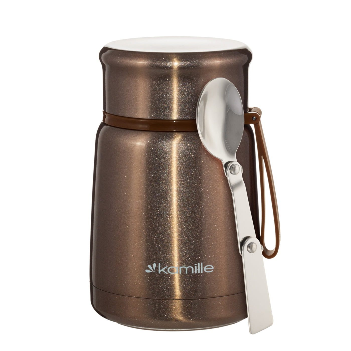Najwygodniej w termosie przechowuje się zupy, musy oraz dania jednogarnkowe. Do termosu zapakujesz ciepły posiłek swojemu dziecku. Termos obiadowy Kamille jest komfortowy w użytkowaniu, jedzenie z niego jest higieniczne i nie ma obawy o zabrudzenie odzieży podczas jedzenia, nawet w trudnych warunkach polowych np. podczas wycieczki szkolnej, na boisku sportowym itp.