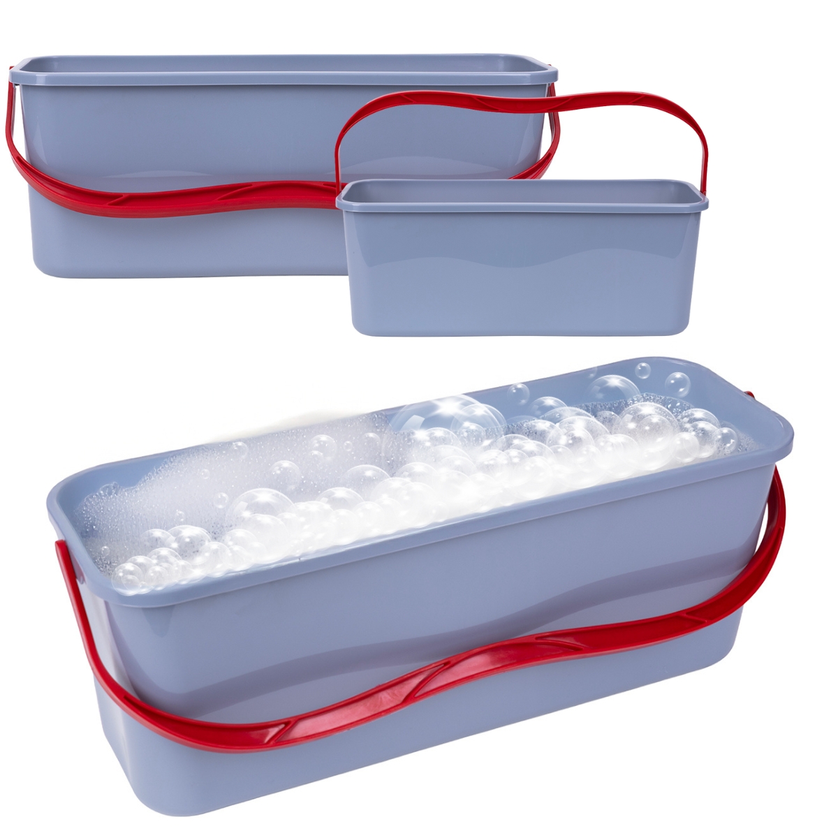 Prostokątna forma sprawia, że idealnie pasuje do mopów płaskich oraz gąbkowych, a jego pojemność pozwala na komfortowe mycie większych powierzchni bez częstego dolewania wody.