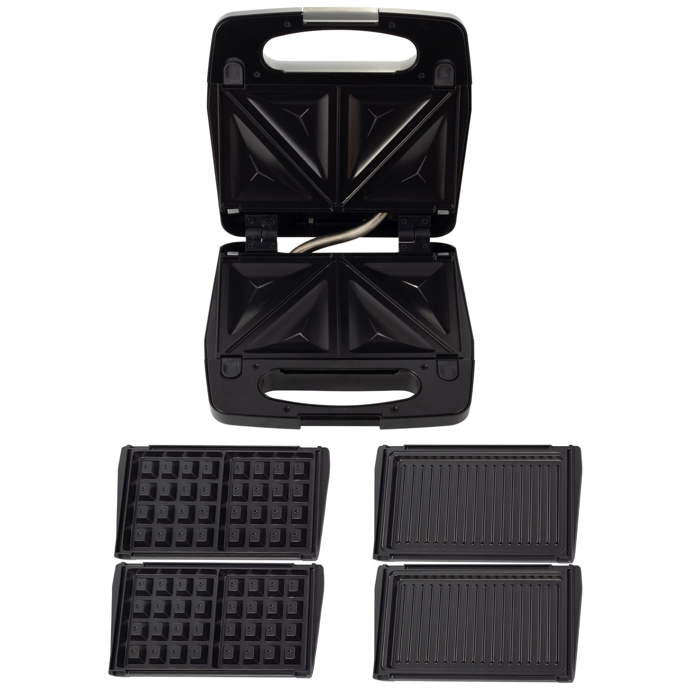 Rewelacyjny opiekacz z wymiennymi wkładami - jedno urządzenie łączące w sobie 3: ✔opiekacz do kanapek, ✔gofrownicę oraz ✔grilla. Powierzchnie pokryte powłoką nieprzywierającą - możesz łatwo oczyścić nawet zwykłym ręcznikiem papierowym. Nienagrzewający się uchwyt ułatwi użytkowanie urządzenia podczas przygotowywania posiłku. Nieprzemijalny design naszego opiekacza z łatwością wpasuje się w wygląd każdej kuchni, nieznaczny wymiar pozwoli na przechowywanie w szufladzie czy szafce.
