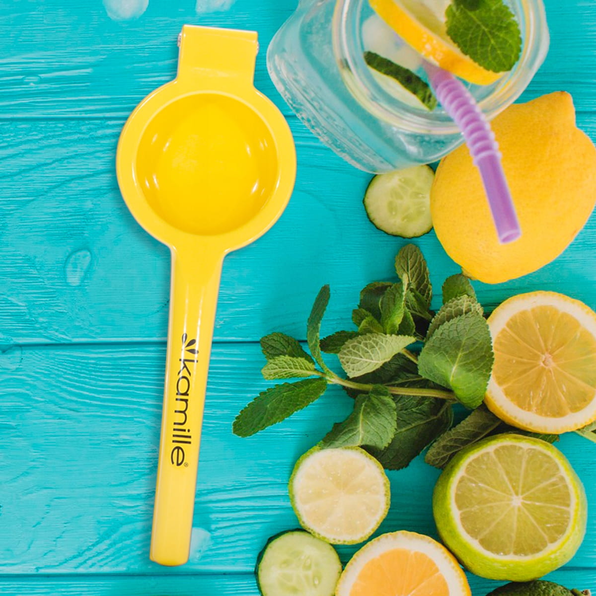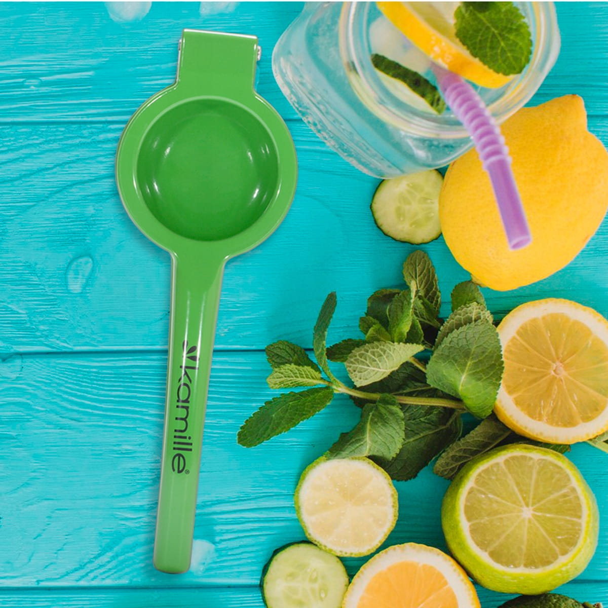 Wyciskacz do cytrusów Kamille wykonany z wysokiej jakości stopu aluminium. Posiada wygodne uchwyty, dzięki czemu wyciskacz dobrze układa się w dłoni.