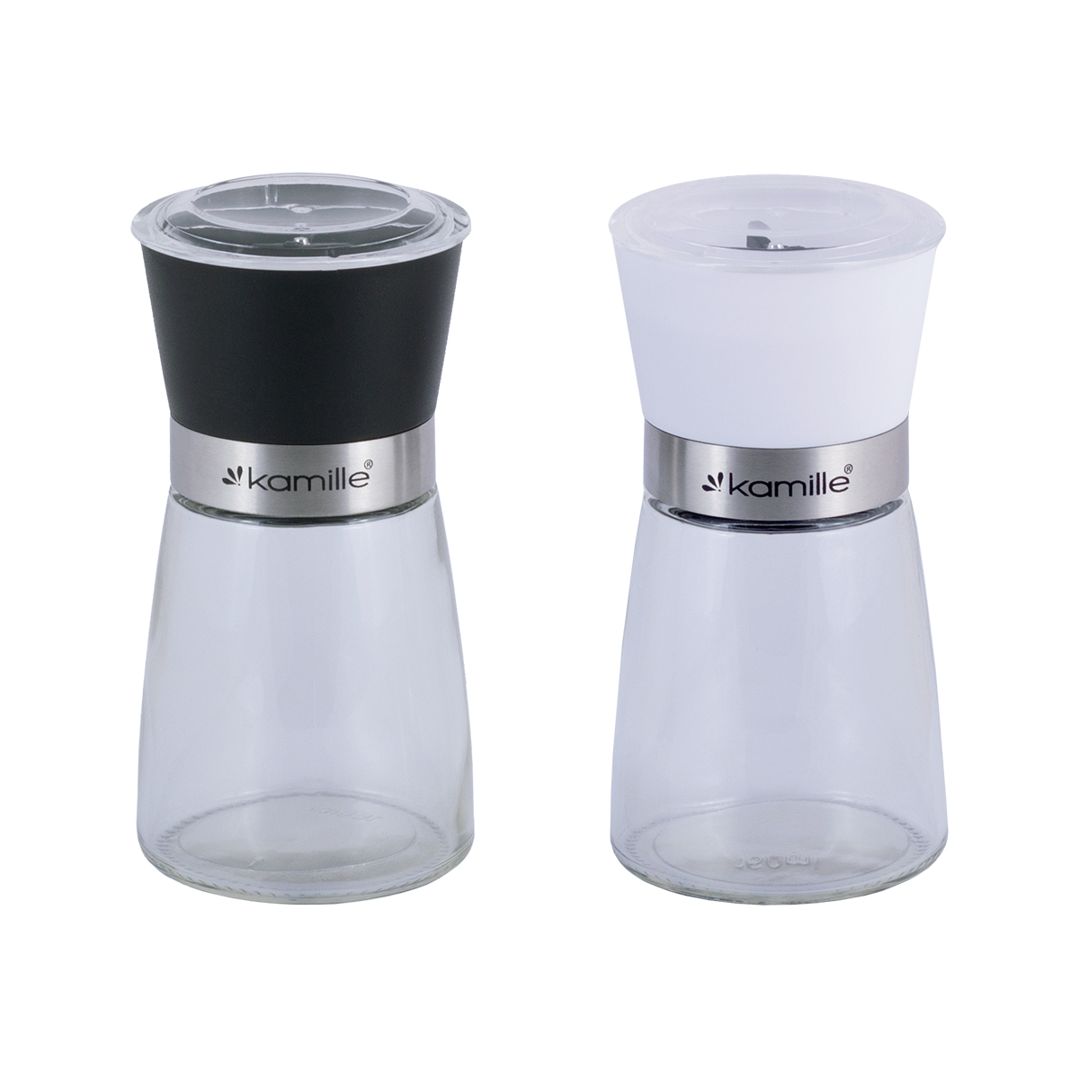 Zestaw młynków do soli i pieprzu Kamille to funkcjonalny dodatek do kuchni, który pozwala doprawiać potrawy świeżo mielonymi przyprawami i podkreślać smak każdego dania.