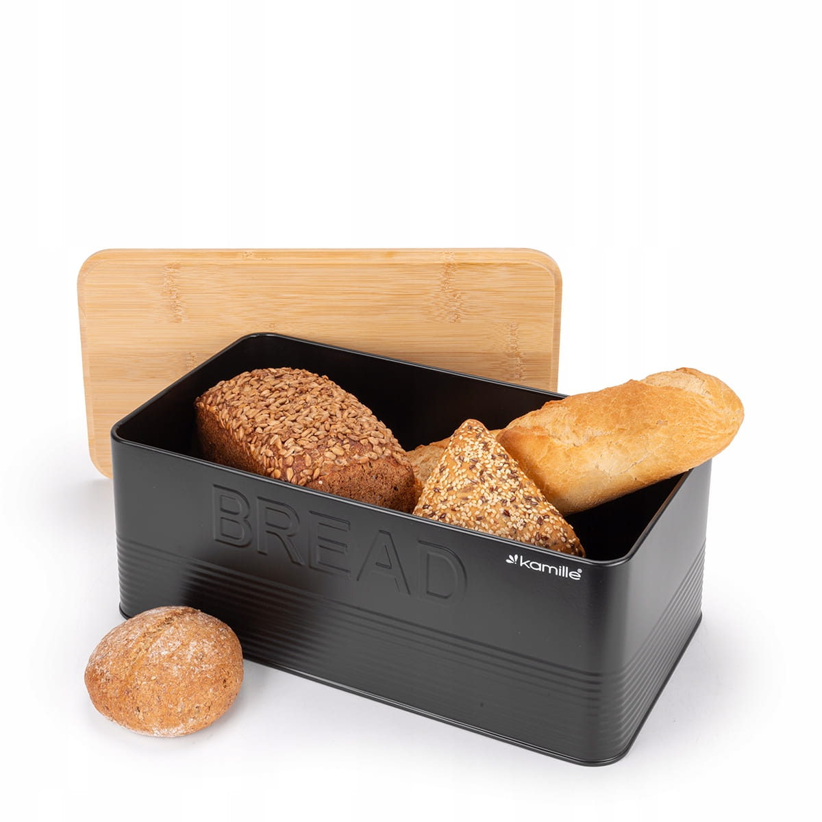 Nowoczesny, elegancki i dokładnie wykonany chlebak Kamille zachowa świeżość pieczywa na dłuższy czas i stanie się ciekawym elementem dekoracyjnym kuchni.