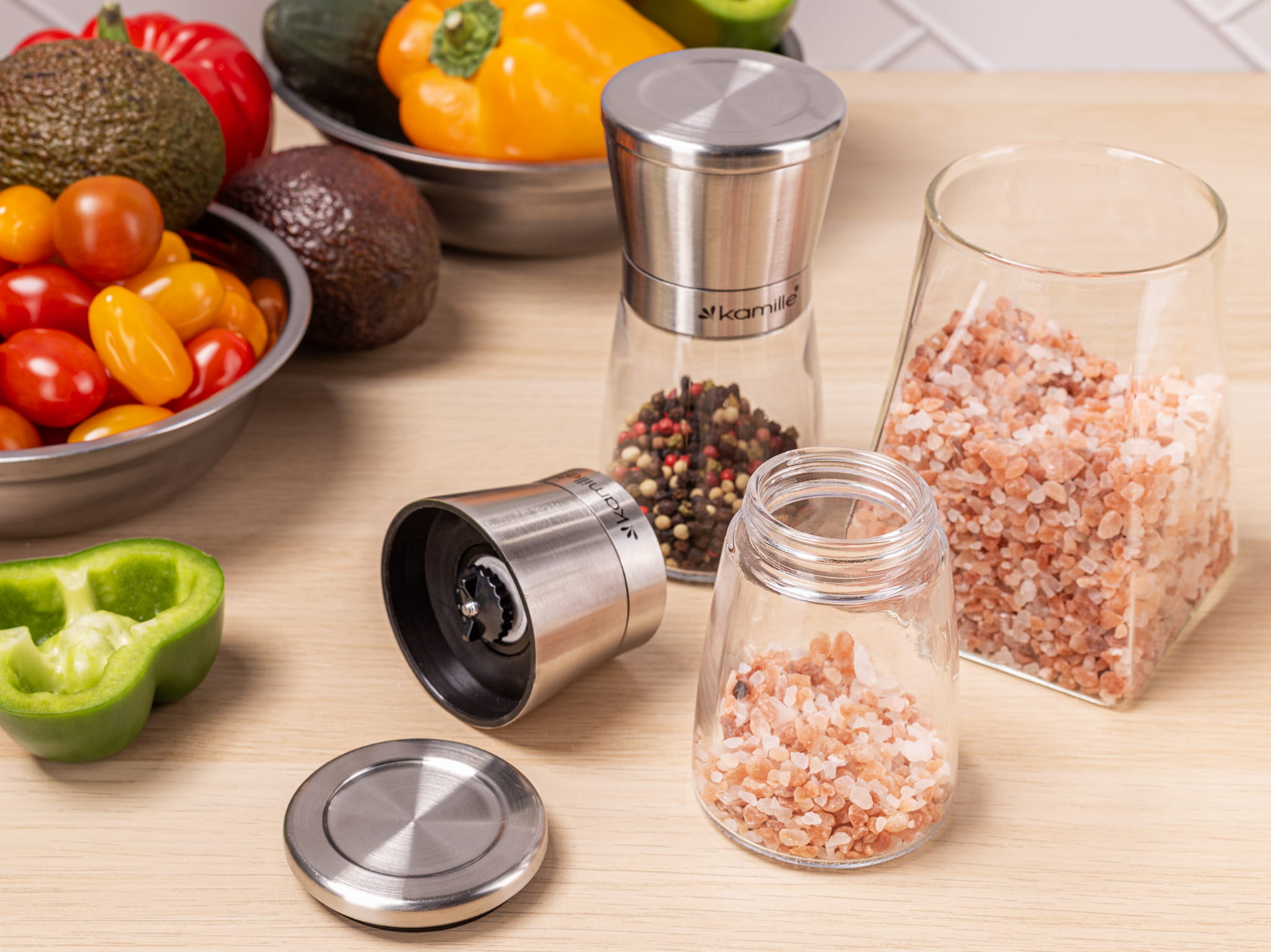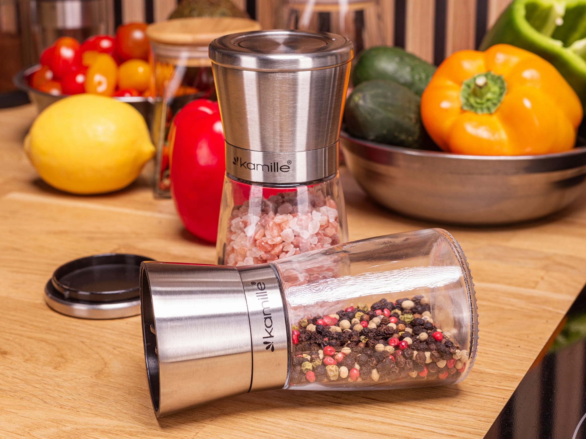 ⭐ Przedstawiamy zestaw młynków do pieprzu i soli Kamille – Twoje nowe narzędzia do podkreślania smaku dań!