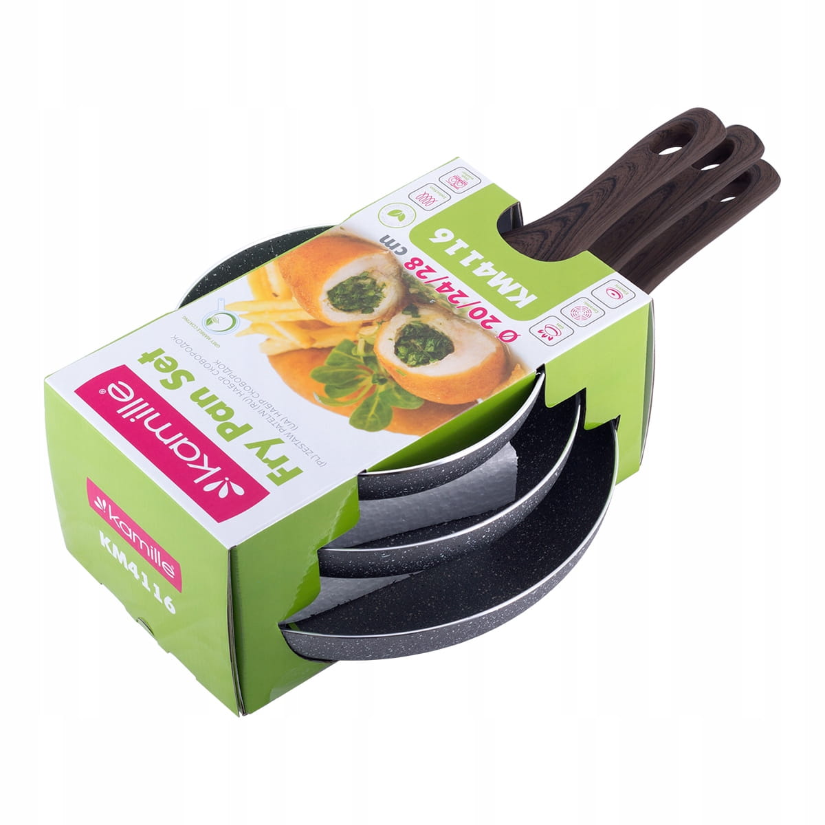 Zestaw patelni granitowych 20/24/28 cm Kamille KM4116