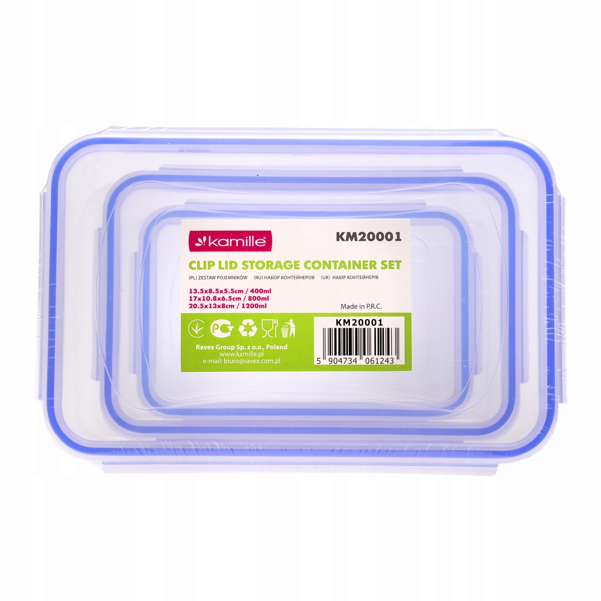 Pojemniki na żywność Kamille o funkcjonalnym kształcie są stworzone do przechowywania zarówno osobnych składników jak i całych dań. Dzięki silikonowej uszczelce zapach zatrzymuje się w środku zamkniętego pojemnika, a Ty bez obaw możesz przewozić swoje potrawy. Zestaw składa się z 3 pojemników o różnych rozmiarach, co pozwala na ich wszechstronne zastosowanie - od przechowywania drobnych przekąsek po duże porcje posiłków. Nasze plastikowe pojemniki na żywność idealne do przechowywania owoców, warzyw, mięs, serów, przygotowanych posiłków, przekąsek, a także do zabrania ze sobą na piknik, do pracy czy szkoły.