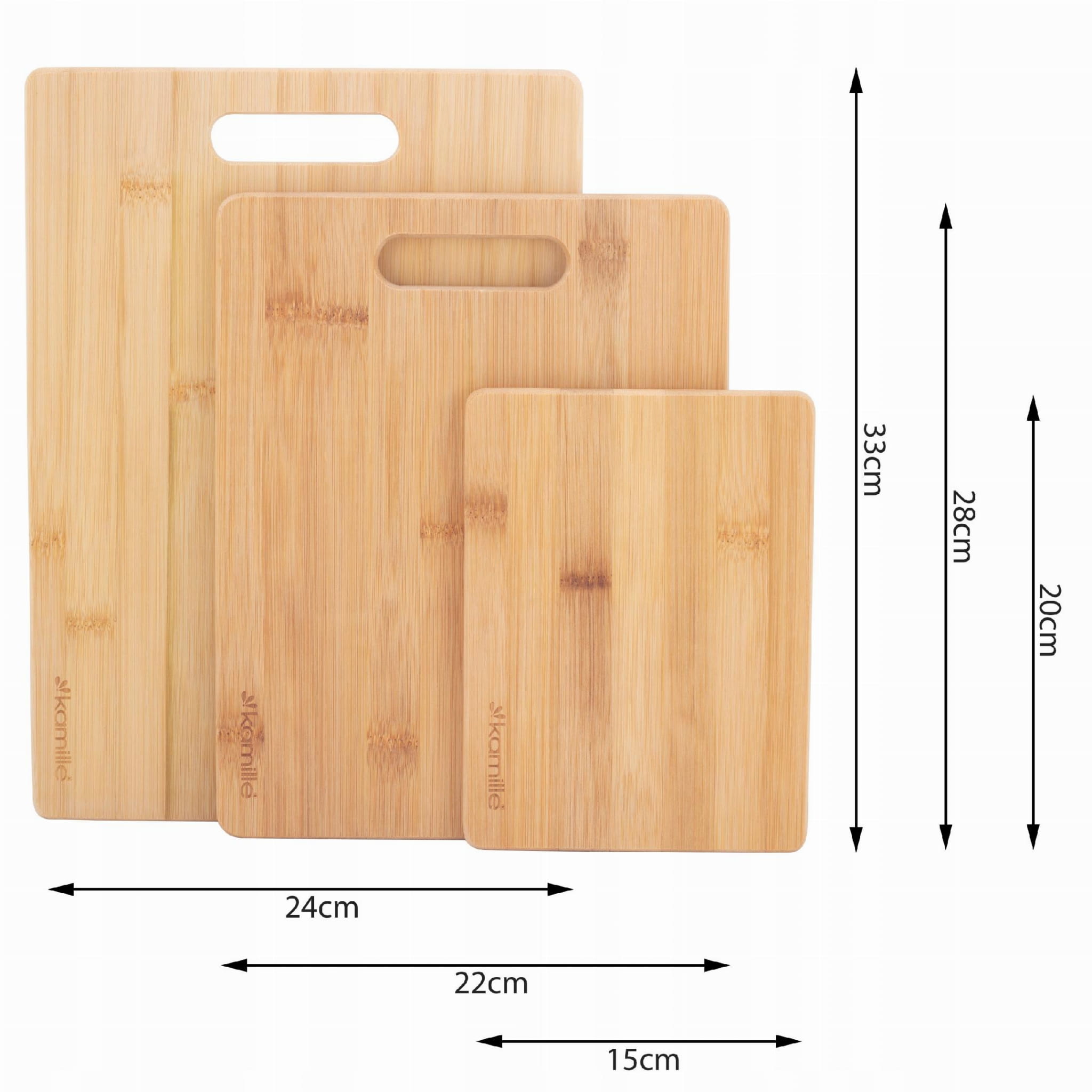 Zestaw desek kuchennych doskonale sprawdzą się w każdym domu. Produkt umożliwi sprawne krojenie różnych warzyw, owoców czy mięsa, a także np. siekanie ziół. Deska kuchenna wykonana z drewna, a dokładniej bambusa ma właściwości antybakteryjne. Produkt posiada uchwyt, który umożliwia również zawieszenie deski w kuchni, tak aby zawsze była w zasięgu ręki. Najmniejsza deska drewniana nada się idealnie jako deska do serwowania różnych przekąsek czy przystawek.