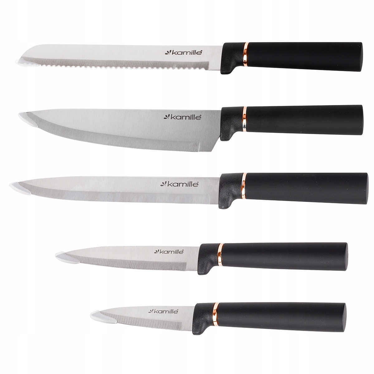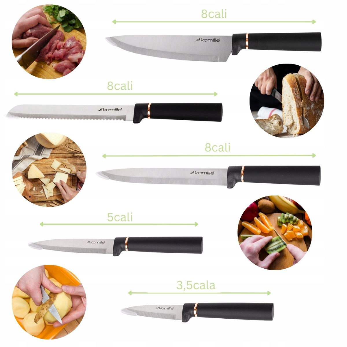 ➡️ Zestaw noży Kamille to must-have w każdej kuchni. Niezależnie od tego, czy jesteś profesjonalnym kucharzem, czy amatorem gotowania, komplet noży Kamille zapewni Ci wygodę i precyzyjne cięcie przy każdym posiłku.